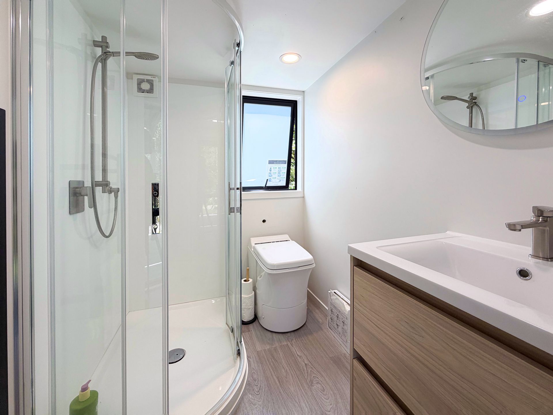 The bathroom offers a shower and a Cinderella incinerator toilet. You will find instructions laid out for you!