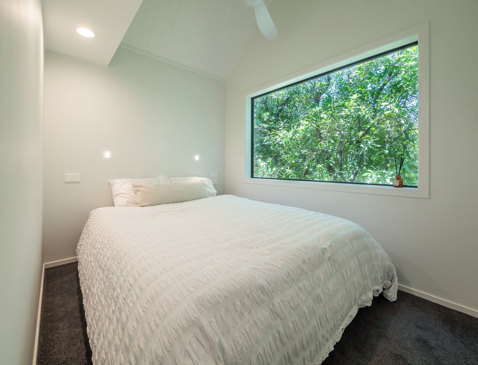 1st bedroom has a Queen bed and window overlooking the garden. The 2nd bedroom is a unique loft stay accessed by a ladder, this room is only suitable for a child. This loft also includes a Queen bed and two side velux style windows!