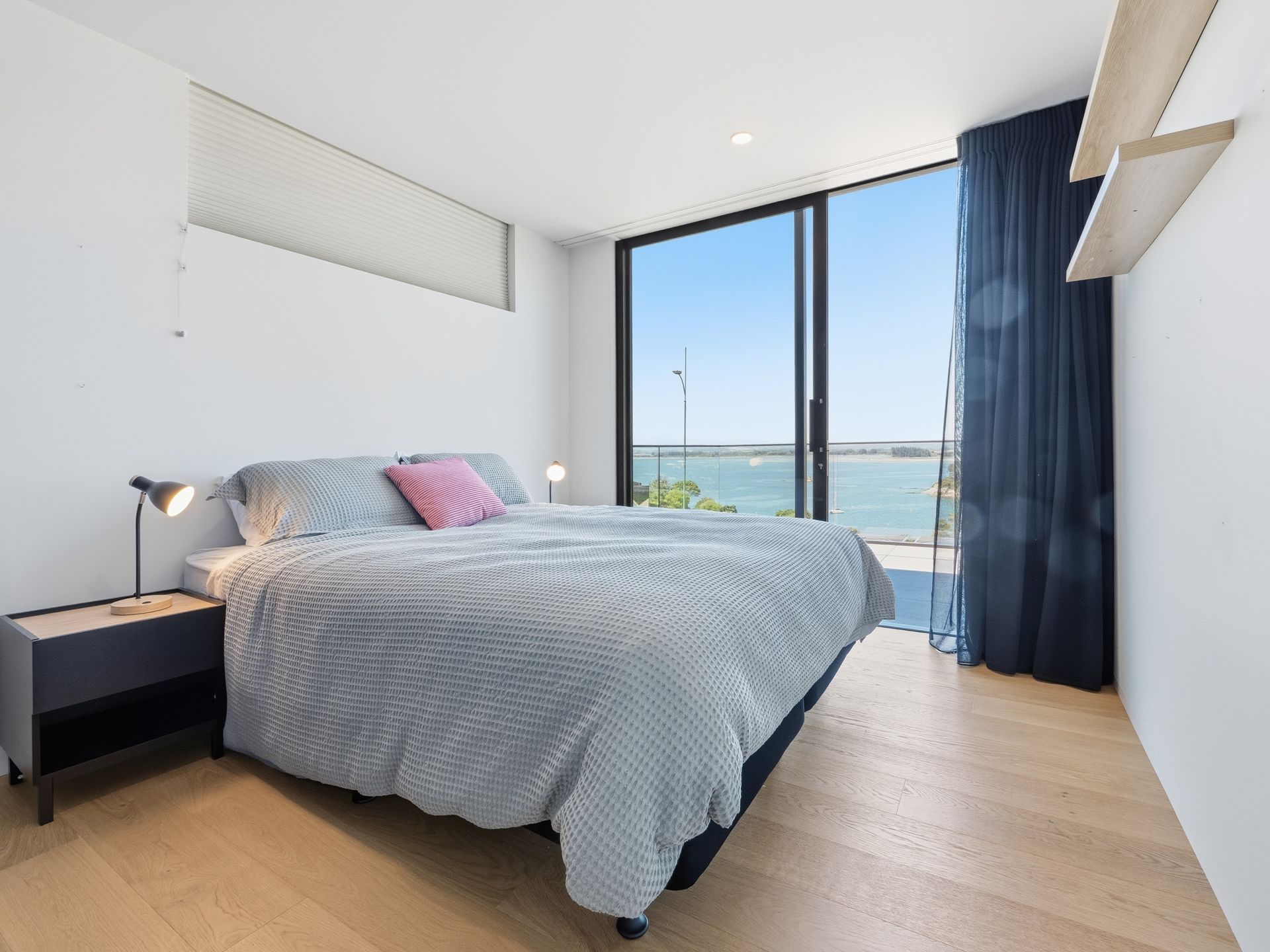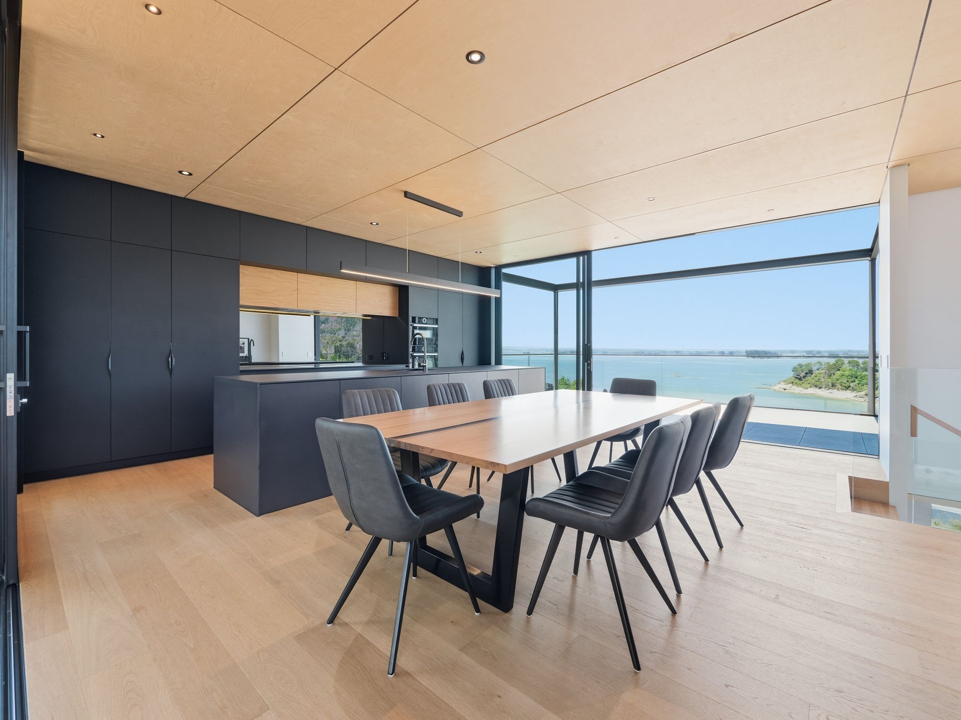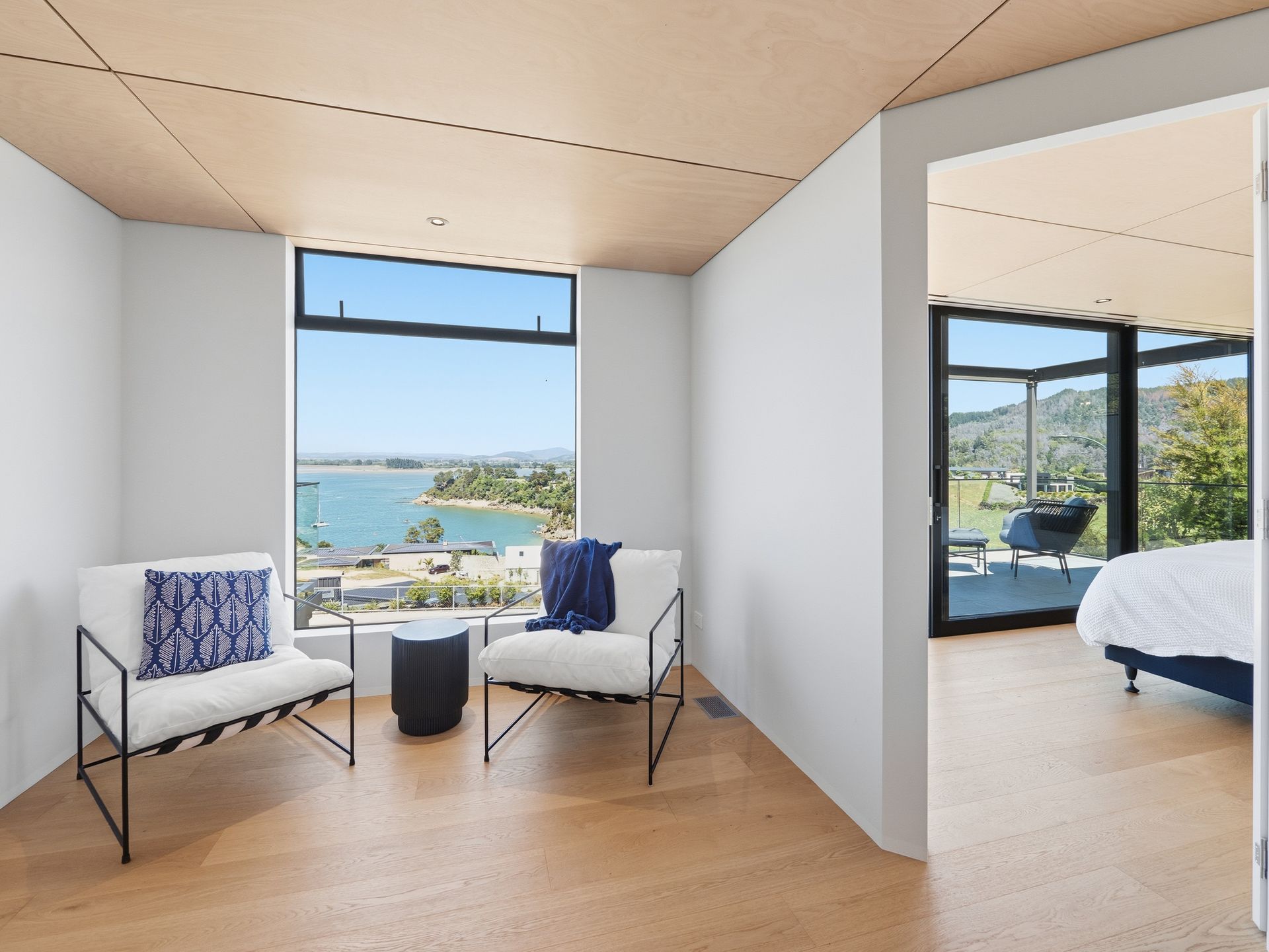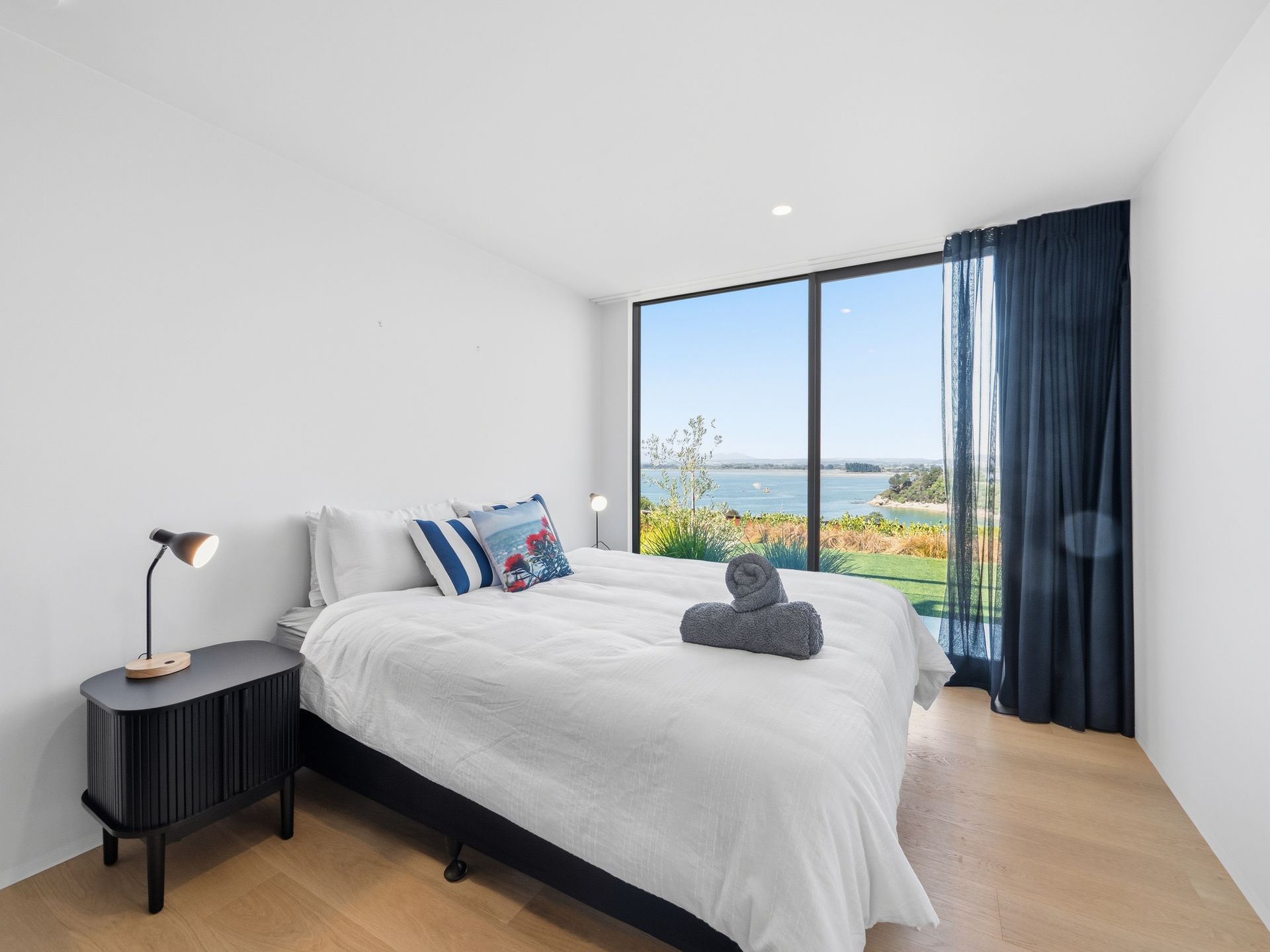 Luxury Bay Retreat is beautifully presented with wooden floors and floor to ceiling windows with expansive sea views from every room and bedroom.