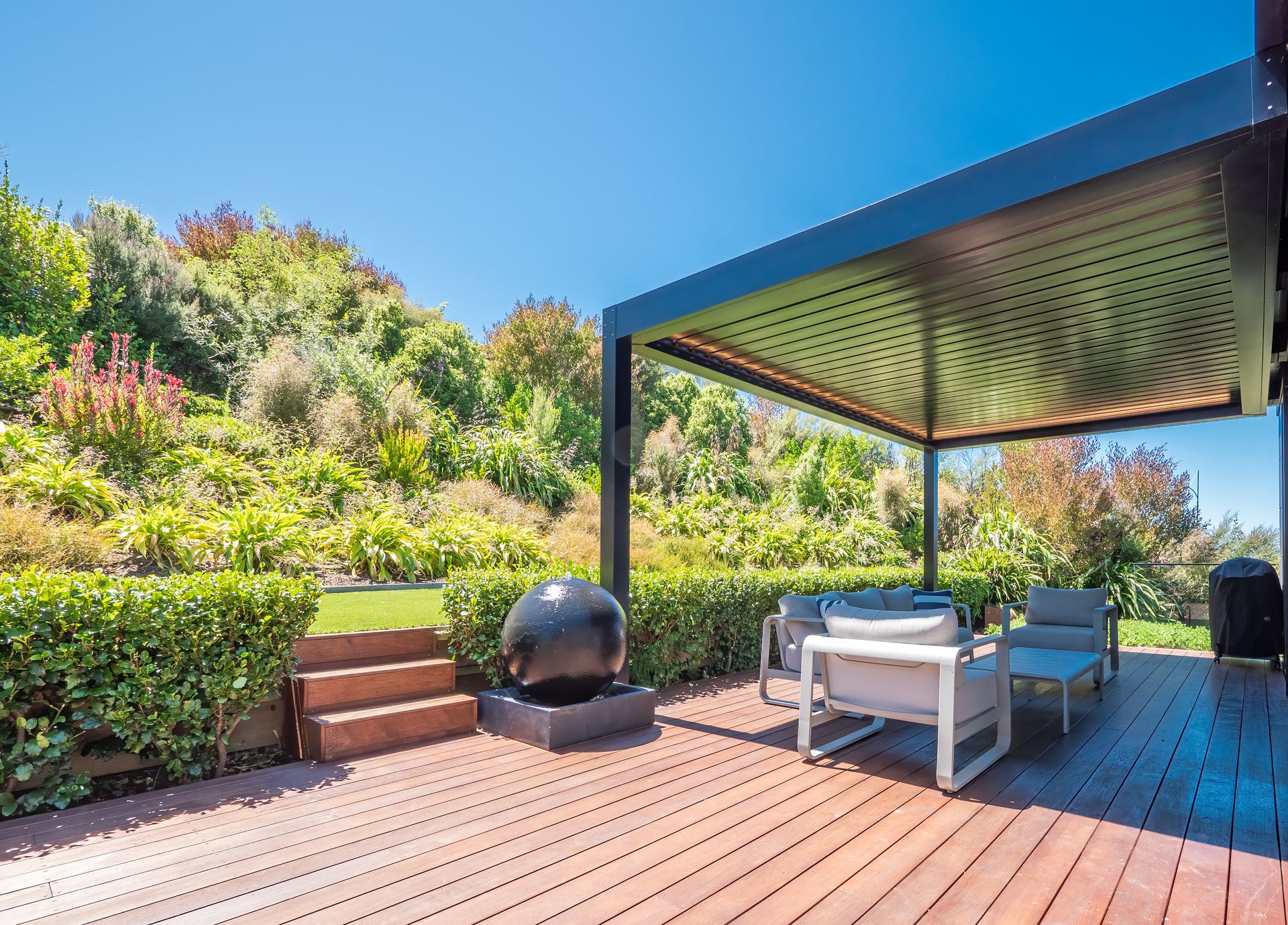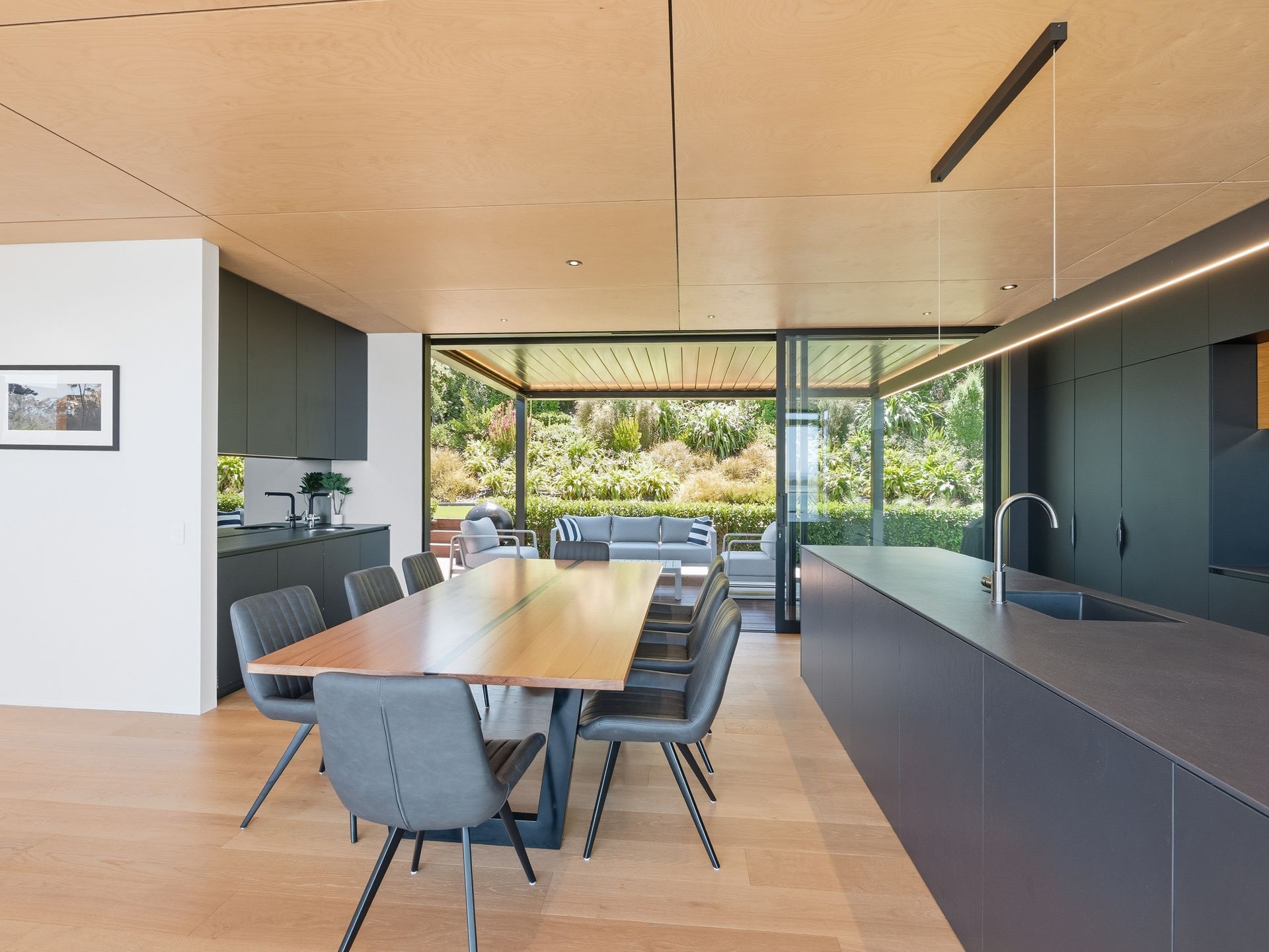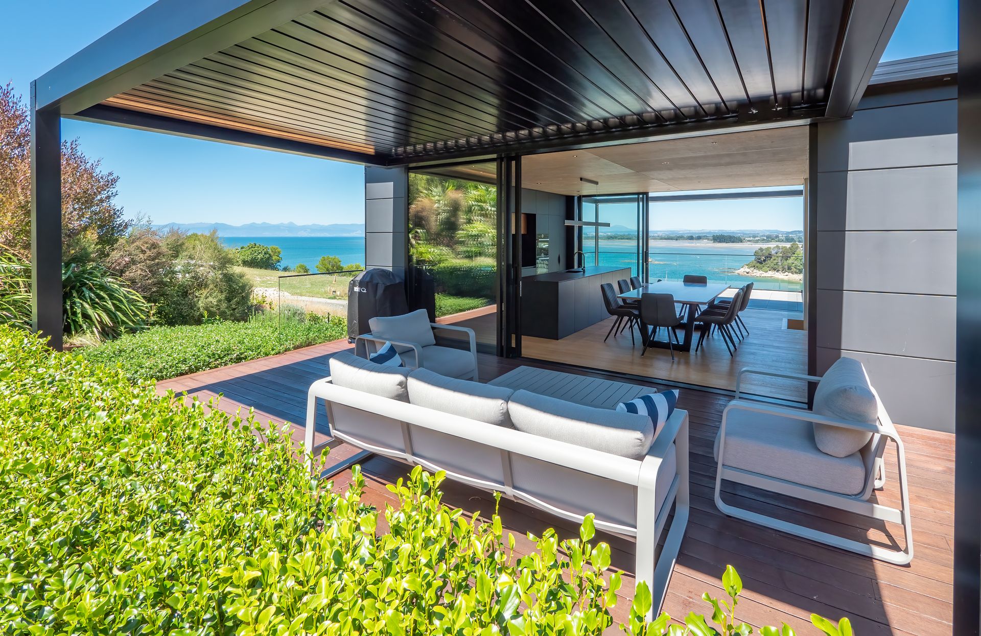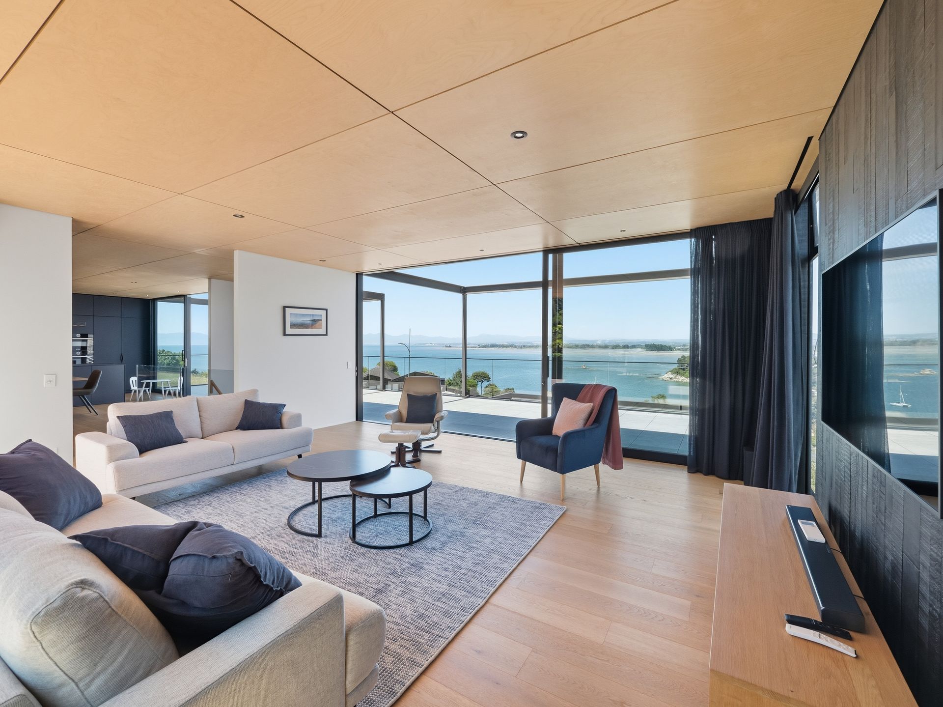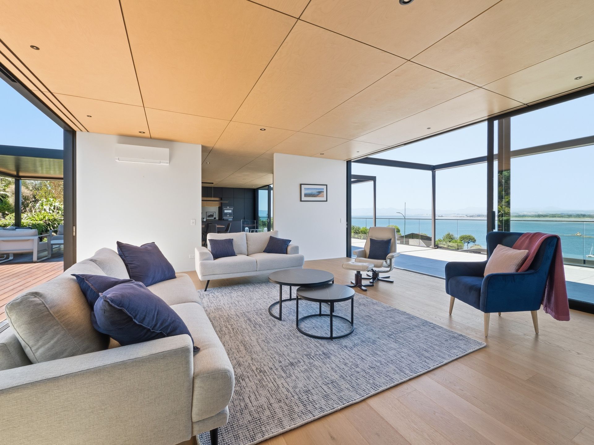 Luxury Bay Retreat is beautifully presented with wooden floors and floor to ceiling windows with expansive sea views from every room and bedroom.