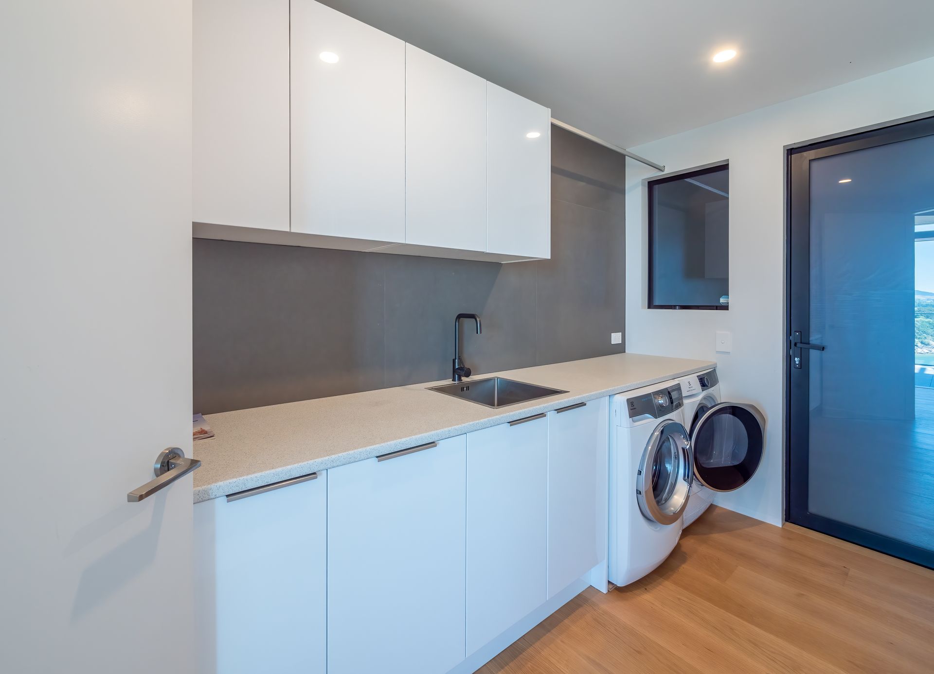 There is a large laundry on the second floor with a sink, washing machine and dryer.